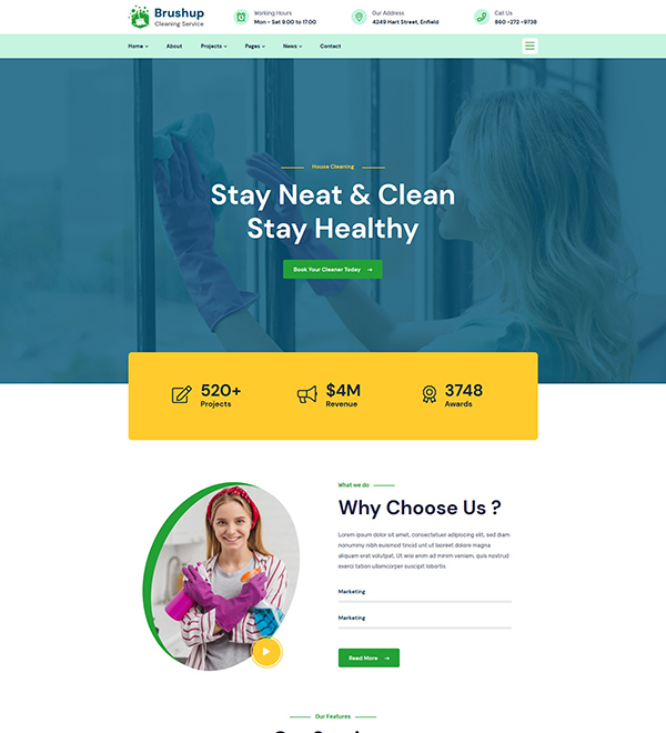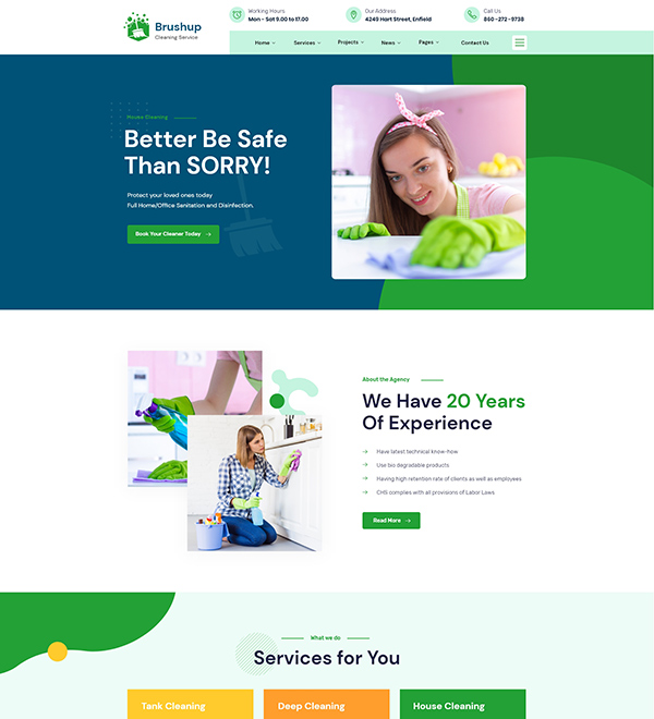 It’s suitable for cleaning website such as Labor services, House Cleaning, Apartment Cleaners, Industry Cleaning, Office Cleaning, Housemaid Solutions, Painter, Construction, Handyman, Plumbing Service, Washing services.